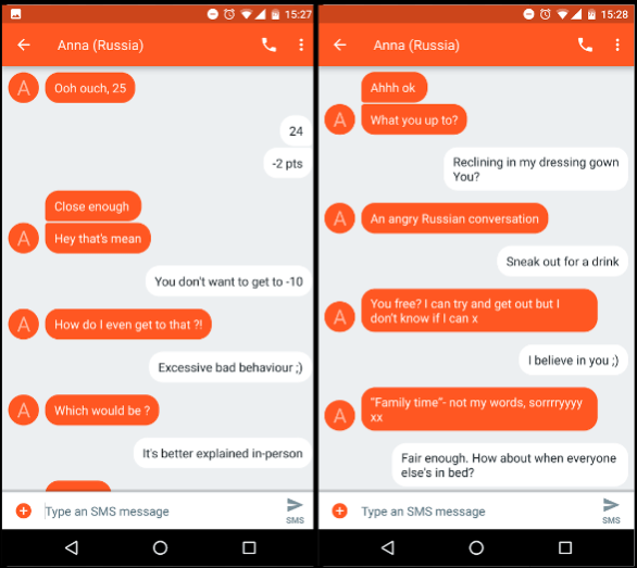 I pinged her later on to see whether she would reply, and she came back near instantaneously; that made me stop and think something could be on here. Maybe I could get her out before she went back home. It was a long shot, and I would have to run the date incredibly quickly, so I tried to get her out that night. She couldn’t sneak away from her parents that evening, but she did come out the next day. Here’s the full transcript of the texting, where I think I played it excellently (credit Mazz for “treating my neighbours…”). In particular: